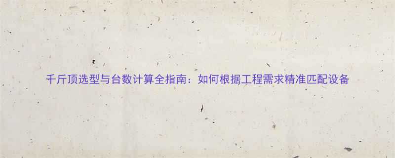 千斤顶选型与台数计算全指南:如何根据工程需求精准匹配设备
