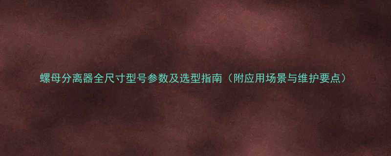 螺母分离器全尺寸型号参数及选型指南(附应用场景与维护要点)