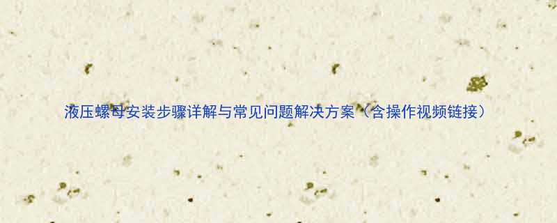液压螺母安装步骤详解与常见问题解决方案(含操作视频链接)