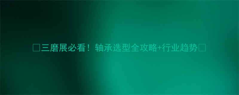🌟三磨展必看!轴承选型全攻略+行业趋势🔥