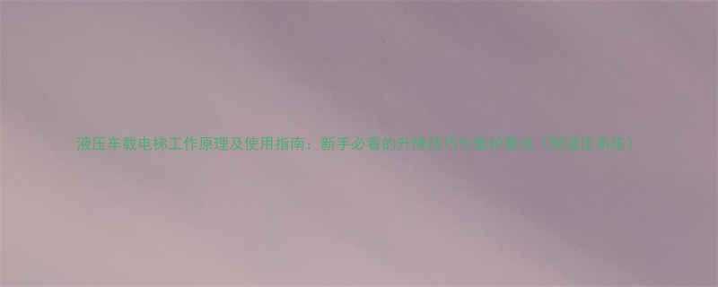 液压车载电梯工作原理及使用指南:新手必看的升降技巧与维护要点(附液压系统)
