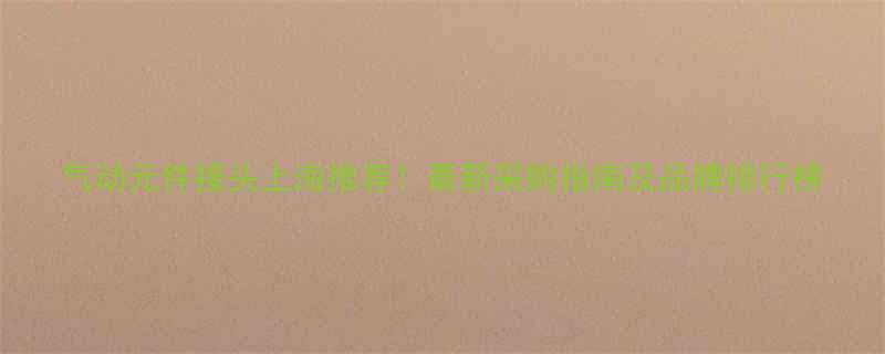 气动元件接头上海推荐!最新采购指南及品牌排行榜