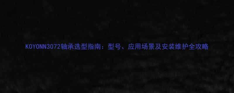 【KOYONN3072轴承选型指南:型号、应用场景及安装维护全攻略】