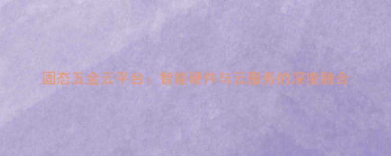 固态五金云平台:智能硬件与云服务的深度融合