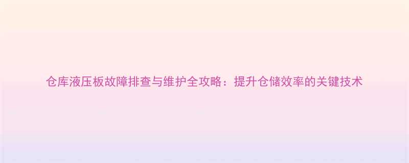 仓库液压板故障排查与维护全攻略:提升仓储效率的关键技术