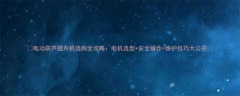 🔧电动葫芦提升机选购全攻略:电机选型+安全操作+维护技巧大公开🔧