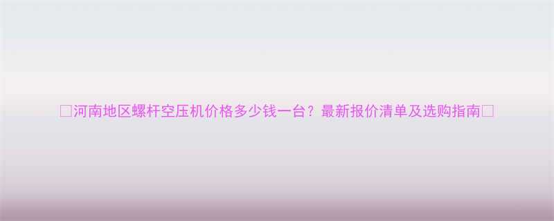 🌟河南地区螺杆空压机价格多少钱一台?最新报价清单及选购指南🌟
