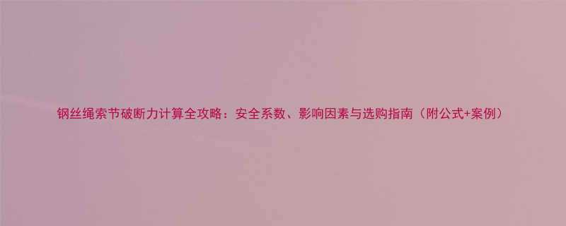 钢丝绳索节破断力计算全攻略:安全系数、影响因素与选购指南(附公式+案例)