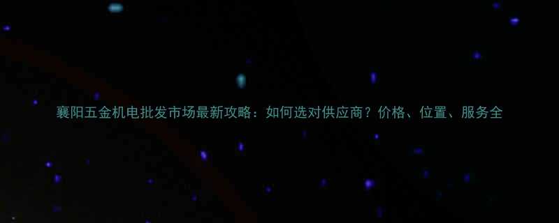 襄阳五金机电批发市场最新攻略:如何选对供应商?价格、位置、服务全