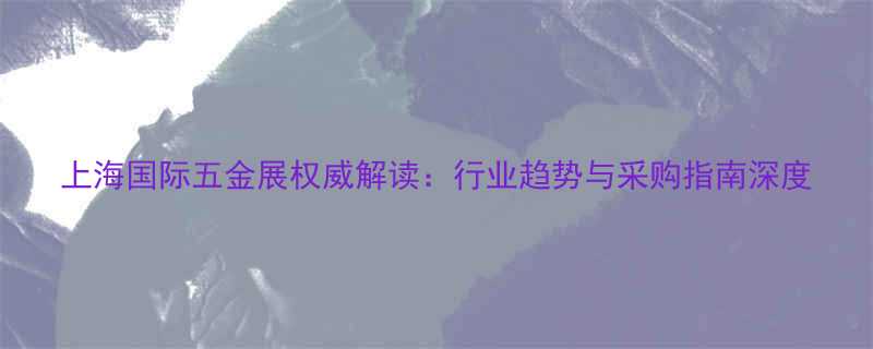 上海国际五金展权威解读:行业趋势与采购指南深度