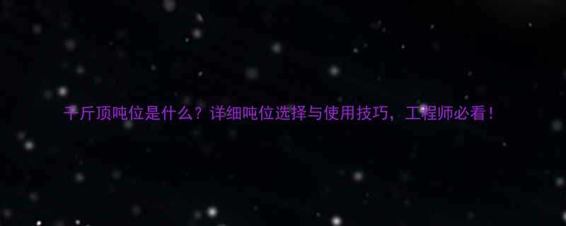 千斤顶吨位是什么?详细吨位选择与使用技巧,工程师必看!