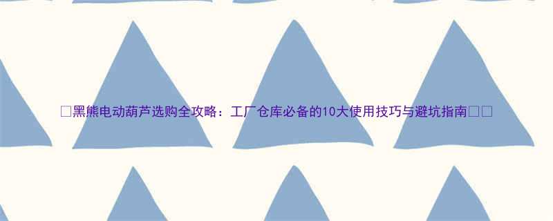 ✅黑熊电动葫芦选购全攻略:工厂/仓库必备的10大使用技巧与避坑指南💪✅
