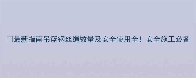 🔧【最新指南】吊篮钢丝绳数量及安全使用全!安全施工必备